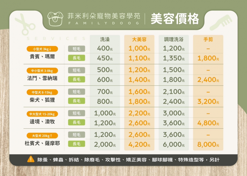 > 洗澡美容價格