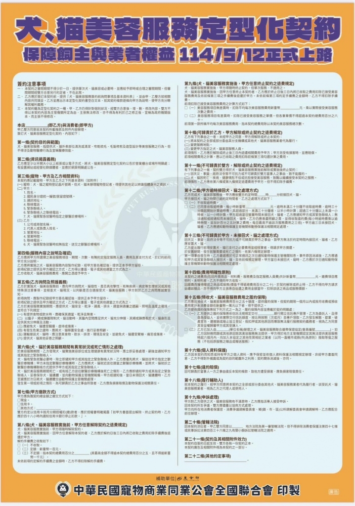 保障飼主與業者權益 114/05/12正式上路